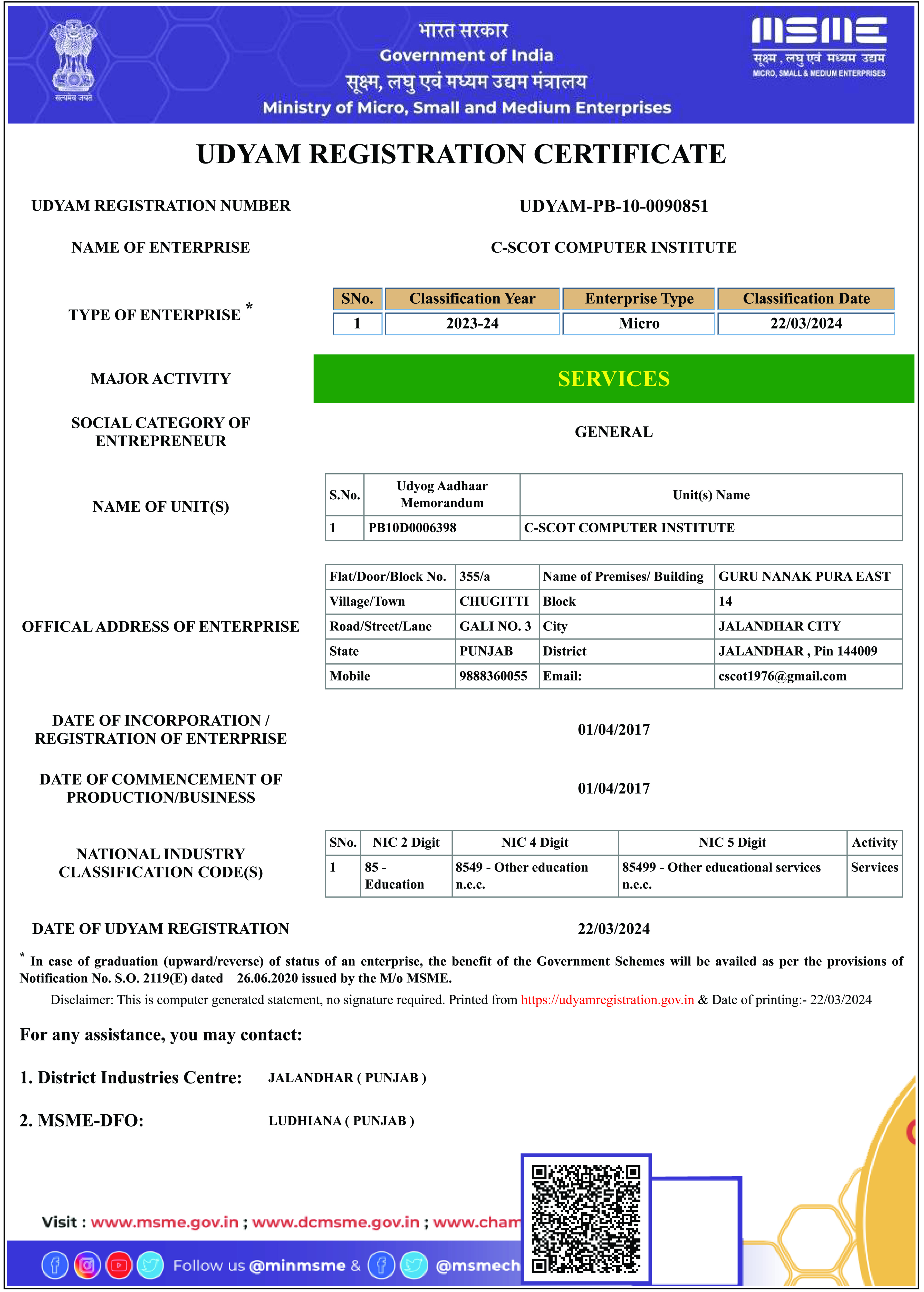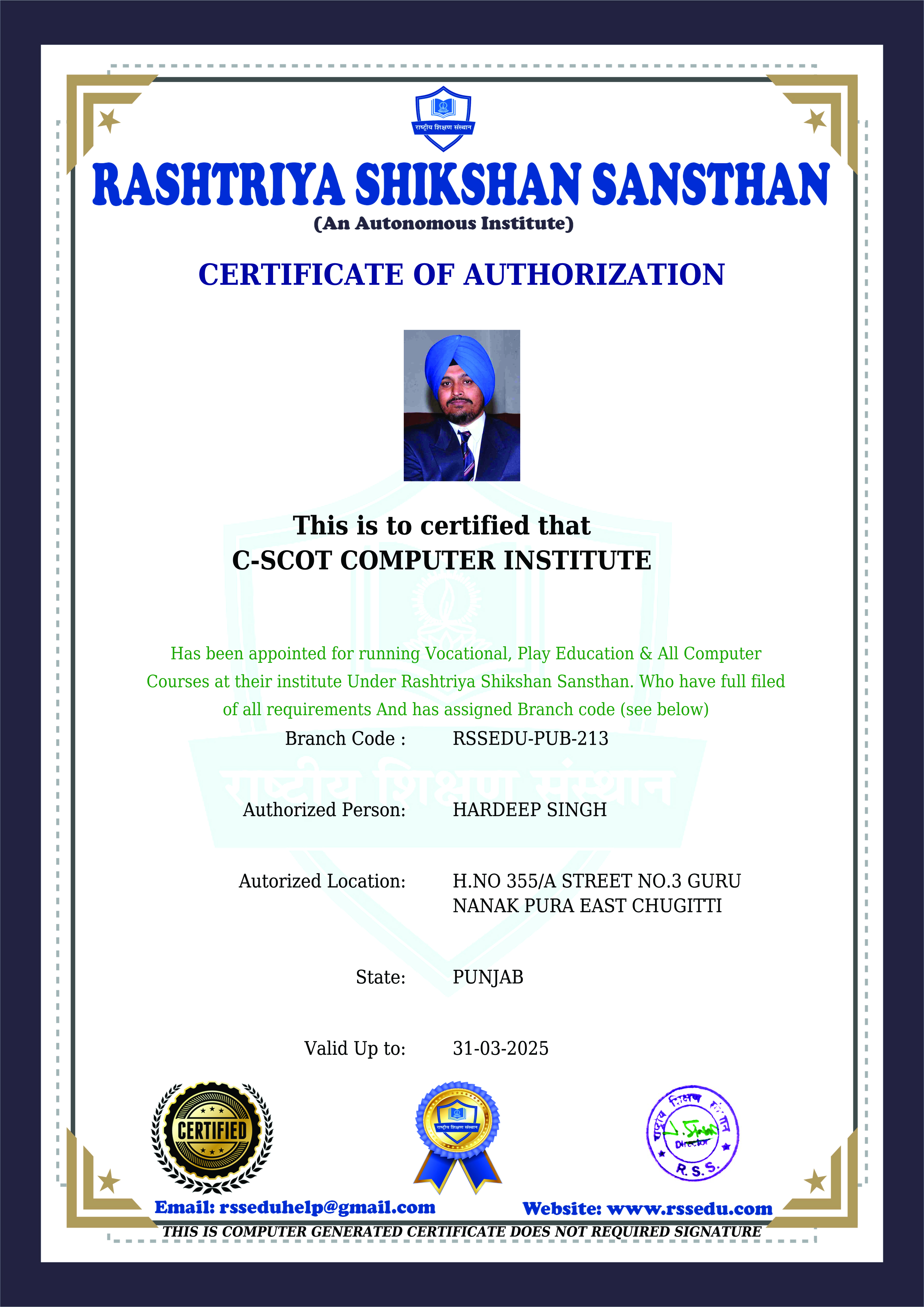 Sonia D/o Satnam singh has worked in our institute as a teacher for 16th August 2022 to till date. She is very dedicated and hardworking.we wish her best fo luck for a bright future ahead.